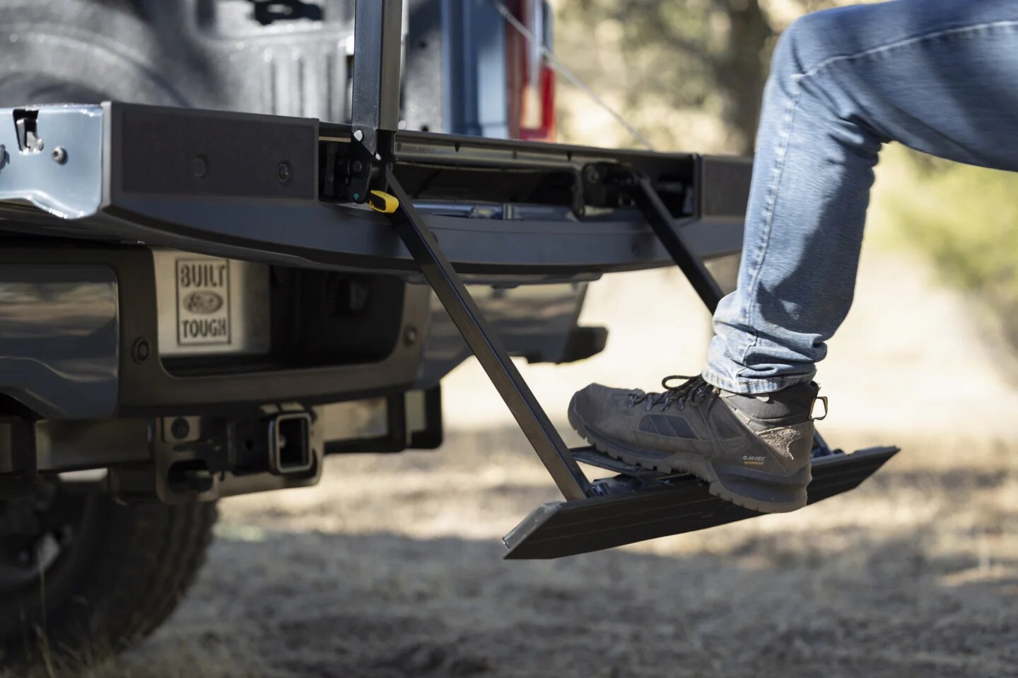 Designed for those who jump in and out of a truck bed more times a day than they care to. An available retractable tailgate step has been lowered 3" than previous Super Duty® models to help you climb into the bed of your truck more easily.