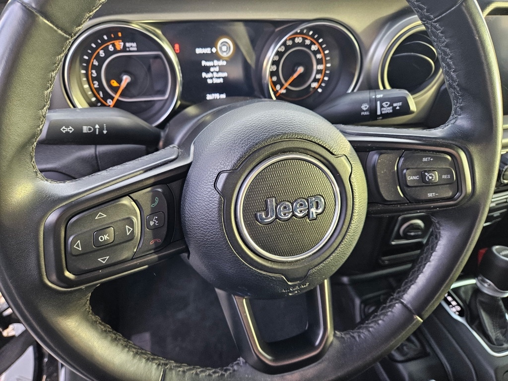 Convenience Group: Remote Start System; Universal Garage Door Opener. Max Tow Package: Dana M210 Wide Front Axle; Anti-Spin Differential Rear Axle; Daytime Running Lamp System; Anti-Lock 4-Wheel Disc Heavy Duty Brakes; 245/75R17 BSW All Terrain Dueler Tires; Dana M220 Wide Rear Axle; 6. 250 lbs GVWR; 4.10 Rear Axle Ratio. Quick Order Package 24S Sport S: Speed Sensitive Power Locks; Automatic Headlamps; Leather Wrapped Steering Wheel; Normal Duty Plus Suspension; Deep Tint Sunscreen Windows; Molded in Color Bumper with Accent Color; 2-Piece Body Color Fender Flares; Front 1-Touch Down Power Windows; Sport S; Power Heated Mirrors; Daytime Running Lamp System; Security Alarm; Power Tailgate Lock; Remote Keyless Entry; Sun Visors with Illuminated Vanity Mirrors. Technology Group: Google Android Auto; SiriusXM Satellite Radio; USB Host Flip; Cluster 7.0 TFT Color Display; Integrated Center Stack Radio; 7.0 Touch Screen Display; Air Conditioning with Auto Temp Control; Integrated Voice Command with Bluetooth; Apple CarPlay. Popular Equipment Package: Black 3-Piece Hard Top. Trailer Tow Package: Heavy Duty Engine Cooling; Trailer Hitch Zoom; Class IV Hitch Receiver; 240 Amp Alternator. 8.4 Radio and Premium Audio Group: Google Android Auto; Off-Road Info Pages; SiriusXM Traffic Plus; Alpine Premium Audio System; SiriusXM Satellite Radio; USB Host Flip; 400W Inverter; HD Radio; Uconnect 4C Navigation Radio with 8.4 Display; Integrated Center Stack Radio; Rear View Auto Dim Mirror; For Details. Visit DriveUconnect.com; Air Conditioning with Auto Temp Control; Console Bin Task Light; 1-Year SiriusXM Guardian Trial; 5-Year SiriusXM Travel Link Service; GPS Navigation; 5-Year SiriusXM Traffic Service; SiriusXM Travel Link; Emergency/assistance Call; Media Hub with 2 Charge Only USBs; 115V Auxiliary Power Outlet; 8.4 Touchscreen Display; Apple CarPlay. Quick Order Package 23S Sport S. Black 3-Piece Hard Top. Alpine Premium Audio System. Anti-Spin Differential Rear Axle. SiriusXM Satellite Radio. Black Clearcoat. 245/75R17 BSW All Terrain Dueler Tires. 17 X 7.5 Black Aluminum Wheels. **Equipment listed is based on original vehicle build and subject to change. Please confirm the accuracy of the included equipment by calling the dealer prior to purchase.**