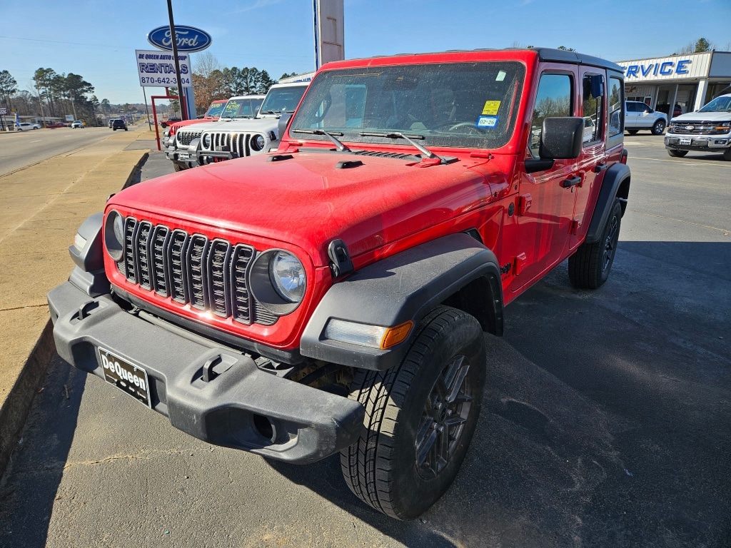 2024 Jeep Wrangler Sport S â" 4WD, 2.0L 4â'cylinder, 37,238 miles â" De Queen, AR This 2024 Jeep Wrangler Sport S blends iconic off-road capability with modern convenience, and it's priced to move â" offering the best price in the region. Powered by a responsive 2.0L turbocharged 4â'cylinder and equipped with 4WD, this Jeep Wrangler is ready for weekend trails and daily driving alike. With 37,238 miles, it delivers proven reliability while retaining the rugged character Jeep is known for. Key features enhance comfort, safety, and connectivity. Apple CarPlay and Hands-Free Bluetooth keep your phone integrated for navigation and media without distraction. Adaptive Cruise Control improves highway confidence by maintaining a safe following distance, while the Back-Up Camera simplifies parking and tight maneuvers. The Off-Road Package adds capability-focused upgrades for serious trail performance. Inside, the Sport S provides durable materials and practical layout suitable for active lifestyles. Exterior design stays true to Jeep Wrangler heritage with a bold stance and removable top options (where equipped) for open-air driving. Whether you plan to tackle backcountry routes or commute through De Queen, AR, this Jeep balances capability and convenience. Vehicle is located in De Queen, AR, and competitively priced as the best deal available. Schedule a test drive to experience the performance and features of this 2024 Jeep Wrangler Sport S firsthand.